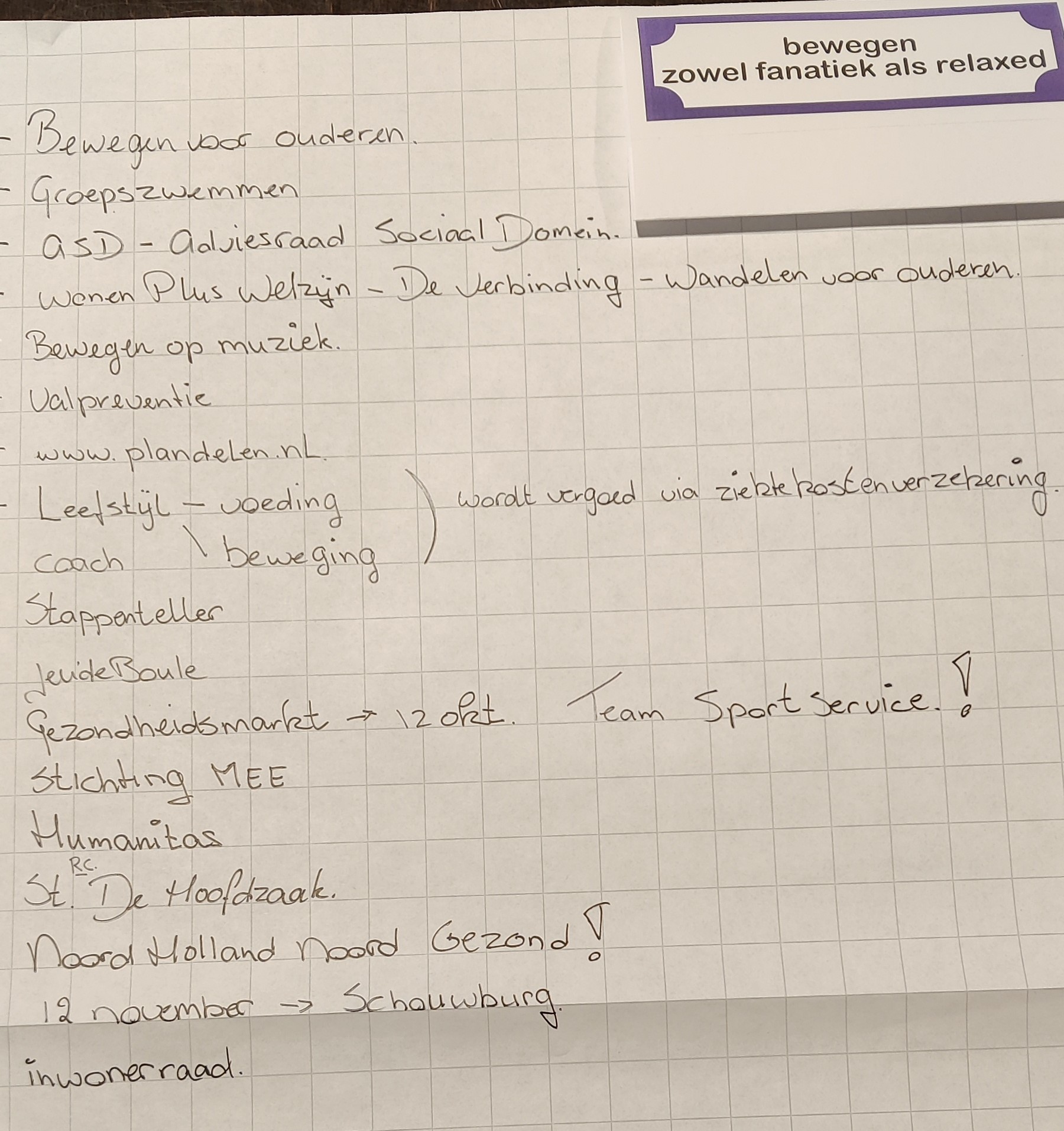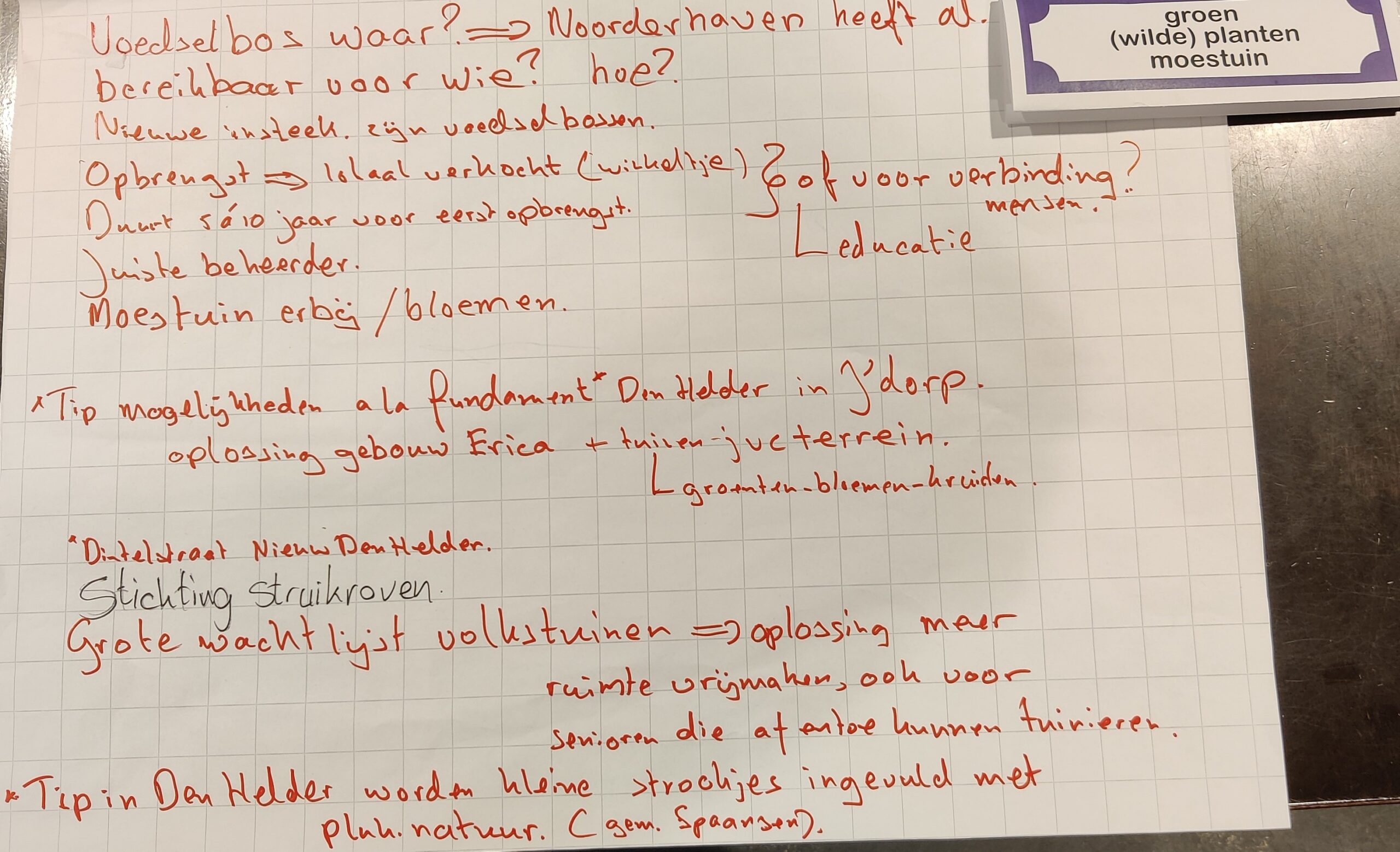 - brainstormen, vragen aan en voor de gemeente